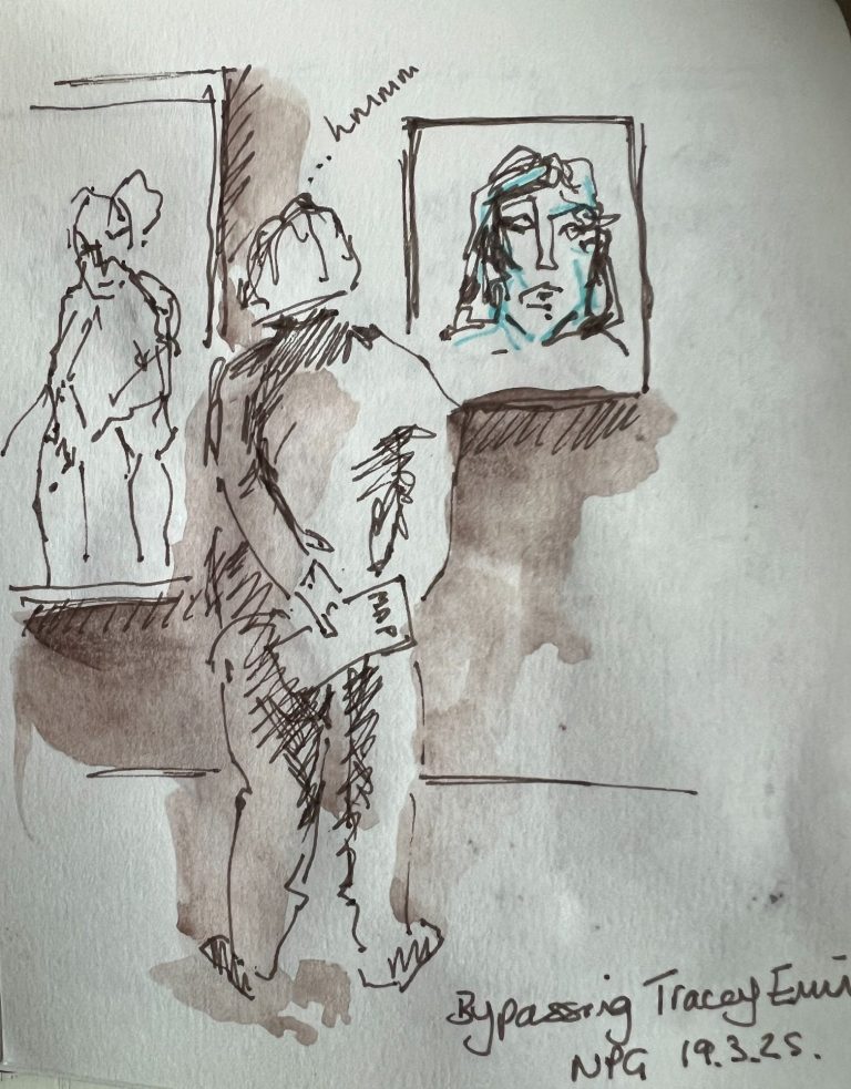Sketches using pencil, pen and ink, charcoal, watercolour and coloured pens.